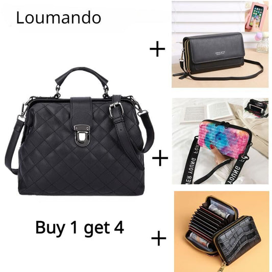 Large capacity Lingge women's bag 2024 new vintage women's bag fashion portable messenger bag single shoulder PU women's bag advanced sense women's bag women's handbag messenger bag
