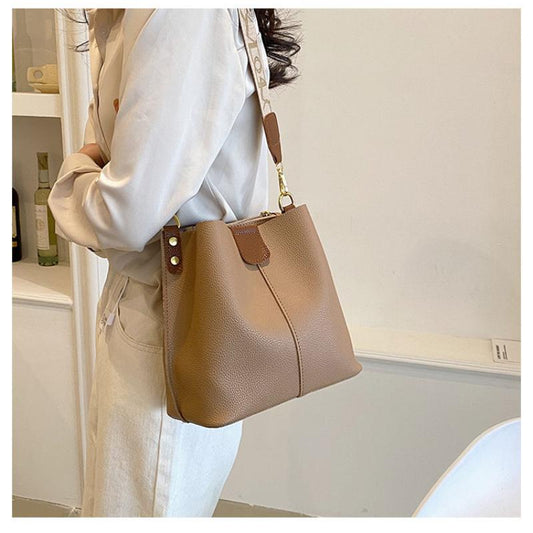 2024 Spring/Summer New Solid Color Fashion Versatile Large Capacity Bucket Bag Double Strap Shoulder Strap Wide Shoulder Strap Comfortable Portable Crossbody Bag Retro Classic Commuting High Quality Women's Bag