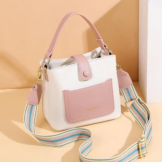 2024 Spring/Summer New Elegant Contrast Color Bucket Bag Sen Cute Sweet Shoulder Bag Casual Versatile Daily Commuter Crossbody Bag Fashion Women's Square Bag