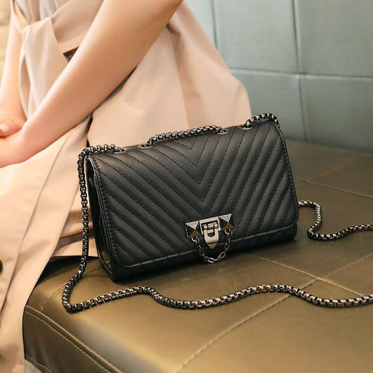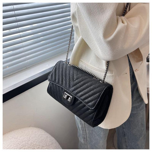 Popular bag women's 2024 new fashion fashion spring and summer handbag messenger bag versatile high-grade texture bag Lingge women's bag temperament women's chain bag black women's diagonal bag