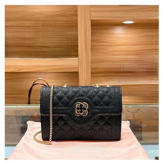2024 Summer New Caviar Solid Chain Bag Commuting Versatile Small Square Bag Refined Fourleaf Grass Single Shoulder Bag Elegant Crossbody Bag Daily Leisure Handheld Women's Bag Premium