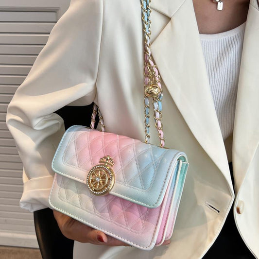 2024 new spring and summer high grade delicate messenger bag fashion versatile rhombus shoulder bag small design contrast color bag elegant lovely women's small square bag