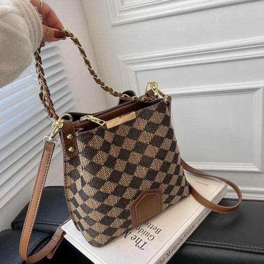 Fashion bucket bag High quality women's bag New advanced texture bucket bag Fashion leopard cross body bag Chessboard case handbag
